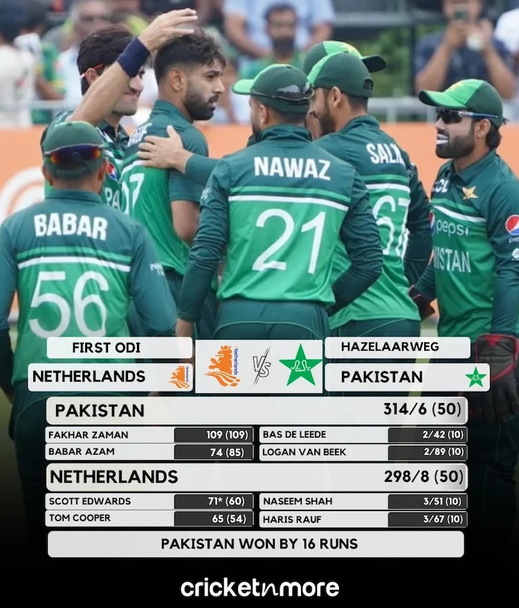 Faheem Ashraf’s late hitting proved decisive after the Netherlands kept the green shirts under pressure through the middle overs, creating a tense finish.